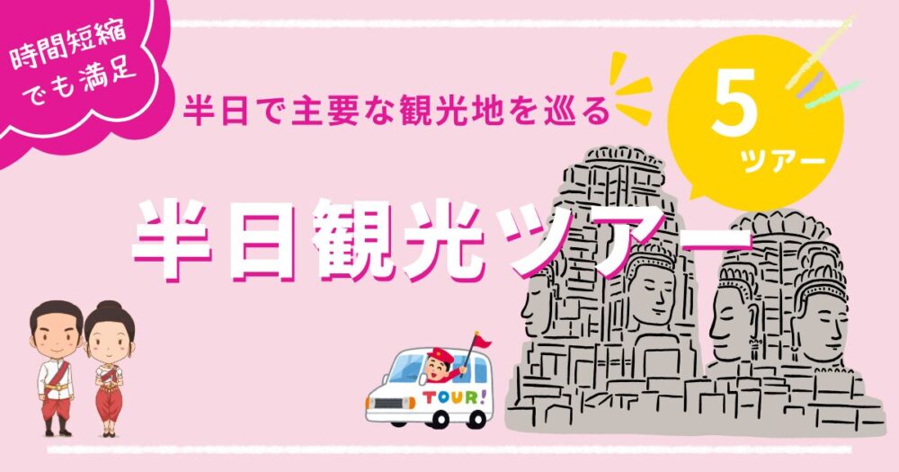 観光ツアー 2024.03.202025.11.04 多種多様なコースをご用意しましたので以下のツアーコースからお選びください! プライベートツアー・日本語ガイドのメリット 観光時間の調整が自由 言葉の不安解消 地理感がなくても大丈夫 専属観光ガイドがガイド本には載っていないような説明や写真スポットを教えてくれる 日本語で話を聞けるので、より深くカンボジアを知ることができる 何かトラブルがあったときにすぐサポートしてくれるなど ▼以下のコース画像の上でクリックして詳細をご覧ください。 日帰りで行ける人気ツアー♪ 半日で回るおすすめをツアーを厳選!! トゥクトゥクで風を感じながら回るツアー♪ 空港から観光地へ直行するお得なツアー♪