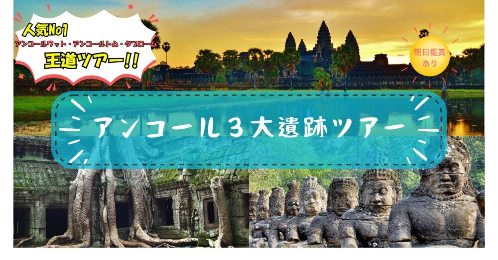 世界でも圧倒的な知名度を誇るアンコールワット。その中でも王道ツアーはアンコールワットの朝日鑑賞から始まるアンコール3大遺跡ツアーです。しっかりと休憩も取りながらアンコールワット、アンコールトム、タプローム遺跡を巡ります。