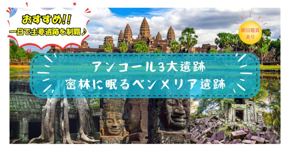 滞在時間が少なく、一日でアンコール3大遺跡とベンメリア遺跡を回りたい方におすすめのツアーだよ♪